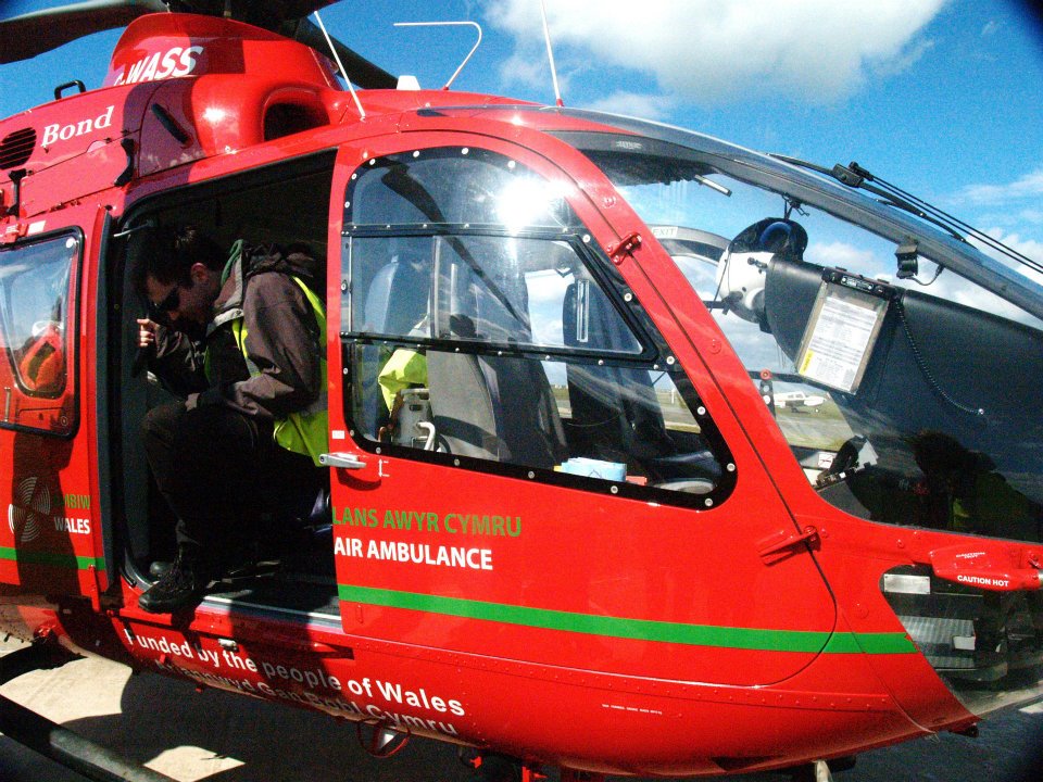 Today, me and some of our first aid division did a trip up to Caernarfon to see the Air Ambulance, and the local ambulance station. Starting off from Aber at 7.40 (>.<) we trekked up to Caernarfon airport – a little air strip by the sea, very nice! As we got there, the Air Ambulance was just landing – and one of the gentlemen that flew in it very kindly showed us around the helicopter.